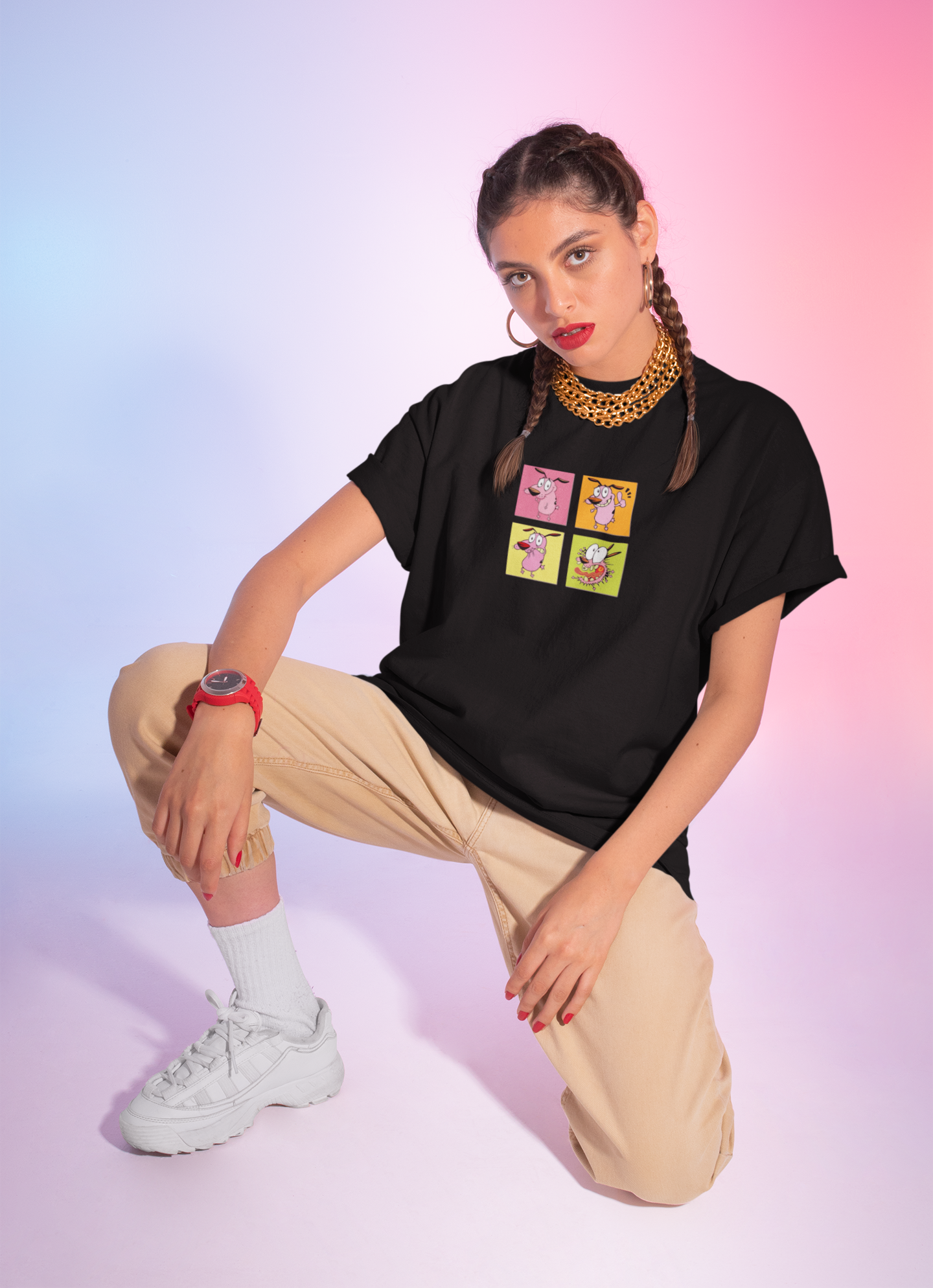 Perfect for: 90s cartoon fans, pop art lovers, vintage animation enthusiasts, expressive dressers, and anyone who's felt like all four Courages before noon.