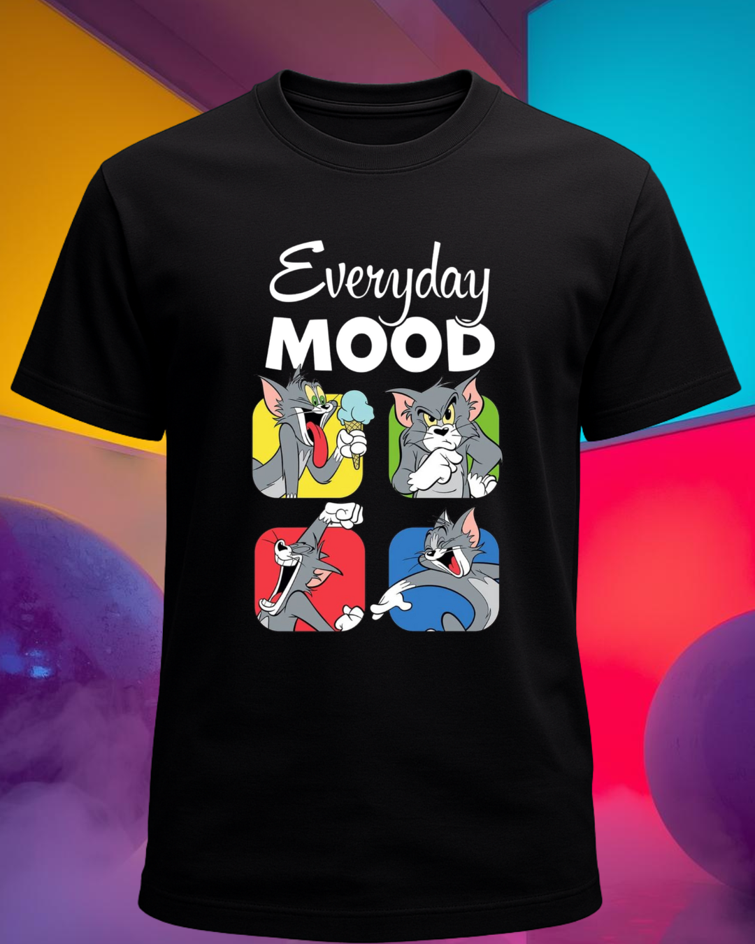 Happy, hungry, over it, or just vibing—Tom's got your whole emotional spectrum covered. Because let's be honest, some days you're chasing your goals like Tom chases Jerry, and other days you're just trying not to lose your cool. For the moody, the relatable, and anyone who's ever felt four different ways before breakfast. This tee is a whole mood board on fabric. Wear it, own your chaos, and let everyone know you're predictably unpredictable.